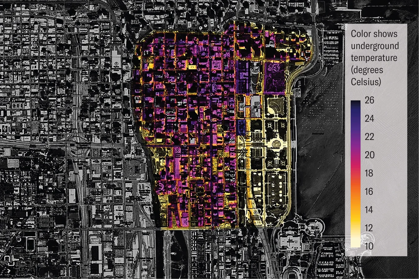Led by Dr. Alessandro Rotta Loria, an assistant professor of civil and environmental engineering at Northwestern, the research team was the first in the world to link underground climate change (also called subsurface heat islands) to ground deformation and subsidence in urban areasNorthwestern. To map the scale of the issue in Chicago, the team installed a wireless network of more than 150 temperature sensors across the Loop—downtown Chicago’s dense urban core—placing them in subway tunnels, parking garages, building basements, and even Grant Park for a natural, undisturbed comparison.